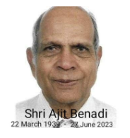 deeply saddened to know that Shri Ajit Benadi, Germany Jain Society President, left this bodily world on June 27, 2023, in Hamburg at 84 years due to Lung cancer and started his soul's