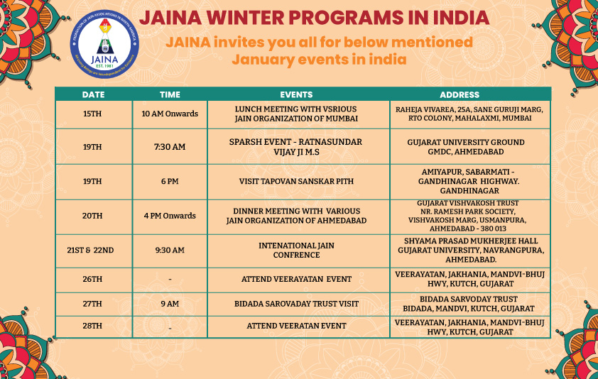 As I step down from this esteemed position, I am filled with pride in our collective achievements and the enduring spirit of unity within our community. I am confident that JAINA will continue to flourish, guided by the principles of Jainism and the collective efforts of its members.