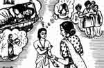 Thaavaacha Putra went back to the roof and listened to the singing. The songs, however, were not as pleasant then. They were harsh and shrill and filled him with a sense of uneasiness: Again he ran to his mother and asked, "What has happened to the songs, Mother? Why are they no longer sweet but strident? Are they being sung by some other person?"