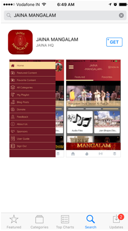 Step-2: Search for “JAINA MANGALAM” App in your iTunes Store