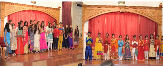 Following the pujas, over 125 pathshala students from 5 Jain pathshala groups enthusiastically performed various skits, dances and parade promoting the message of Bhagwan Mahavir.