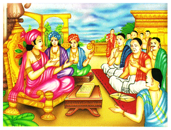 Once in the city of Apapa, a Brahmin named Somil was conducting a Yagna (sacrificial ceremony) at his home. There were over four thousand Brahmins present at the occasion, and there were eleven popular scholars among them.