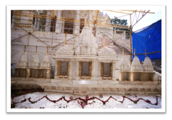 Most Jains conduct the first of five required rituals of the pilgrimage here. This ritual is called "Chaityavandan". There are 11 mini-shrines above Jay Taleti that houses foot prints of enlightened souls who walked up this path and made it sacred. The center-most shrine has the foot prints of Adinath, the first Tirthankar, to whom the main temple is dedicated.