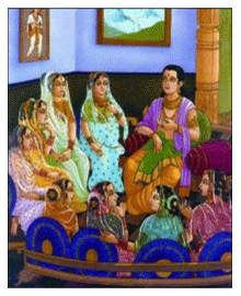 In the city of Rajgrihi, there lived a wealthy merchant named Rushabhadatt. His wife, Dharini, gave birth to a very handsome son named Jambu in 542 BC. He grew up into a very bright and intelligent young man, well-liked by everyone. When he became older, many families were eager to have their daughters marry him. It was a normal practice in those days for a man to have more than one wife. His parents selected 8 girls from reputed families and Jambu was duly engaged to all of them. It was a joyous time for all. One day...