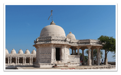 As you enter, notice the water reservoir, or parab, on the left. Now look to the right. These are individual shrines for each of the 24 tirthankars with idols and footprints.